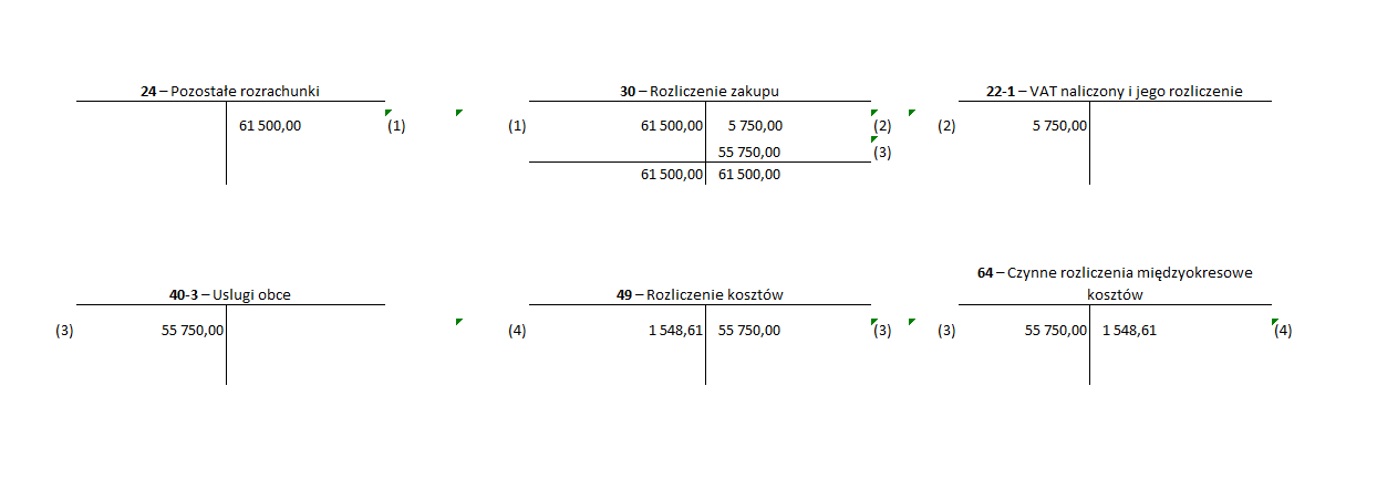 Wn konto 30 "Rozliczenie zakupu" 61 500 zł