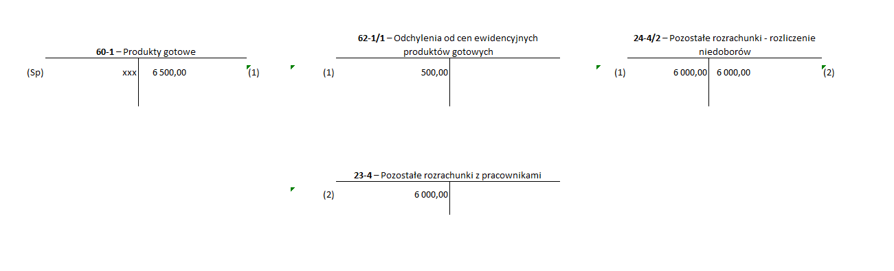 niedoborów materiałów, towarów, produktów gotowych przeksięgowanie następuje następującym zapisem: