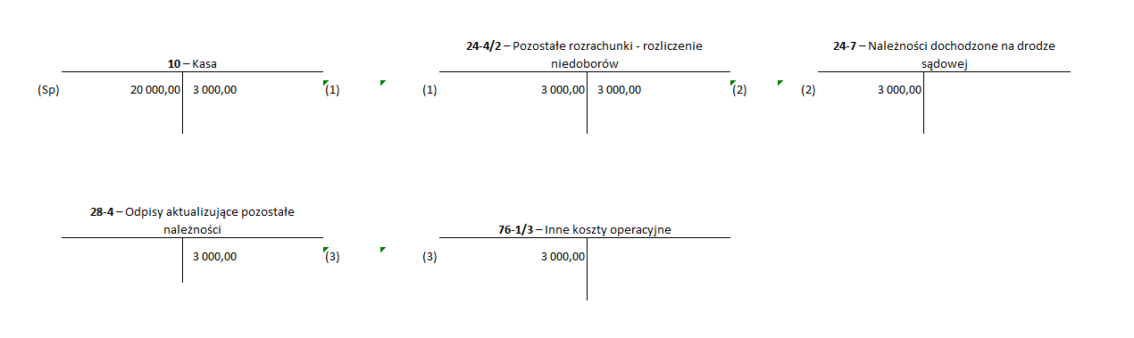 Wn konto 24-4/2 "Pozostałe rozrachunki - rozliczenie niedoborów" 3 000 zł