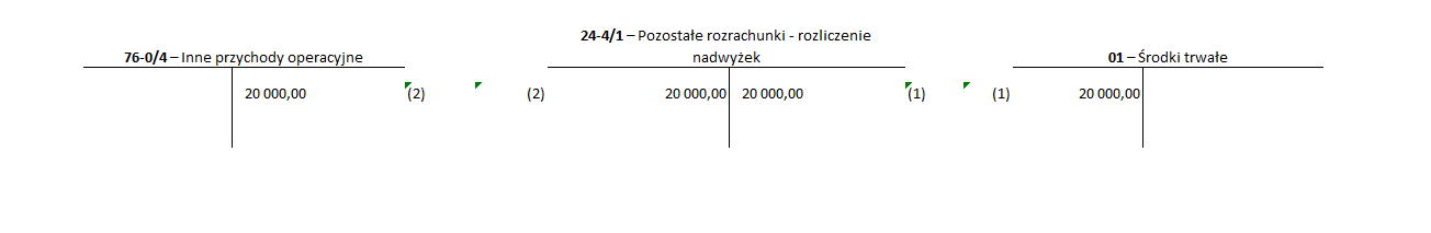 Wn konto 24-4/1 "Pozostałe rozrachunki - rozliczenie nadwyżek" 20 000 zł