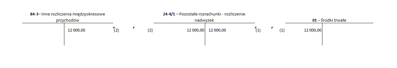 Wn konto 24-4/1 "Pozostałe rozrachunki - rozliczenie nadwyżek" 12 000 zł