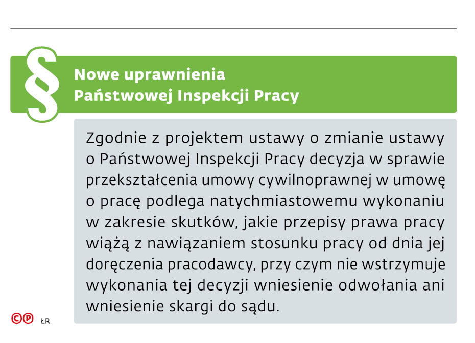 Trzeci projekt nowelizacji ustawy o PIP zapowiedział przy okazji spotkania w kancelarii premiera z organizacjami pracodawców i związków zawodowych minister Maciej Berek, odpowiedzialny za nadzór nad wdrażaniem polityki rządu. Szczegółów zmian nie ujawnił, ale samo ogłoszenie nowych prac wystarczyło, by ożywić dyskusję o jednym z najbardziej spornych przepisów - nadawaniu decyzjom inspektorów w sprawie przekształcenia umowy cywilnoprawnej w umowę o pracę rygoru natychmiastowej wykonalności.